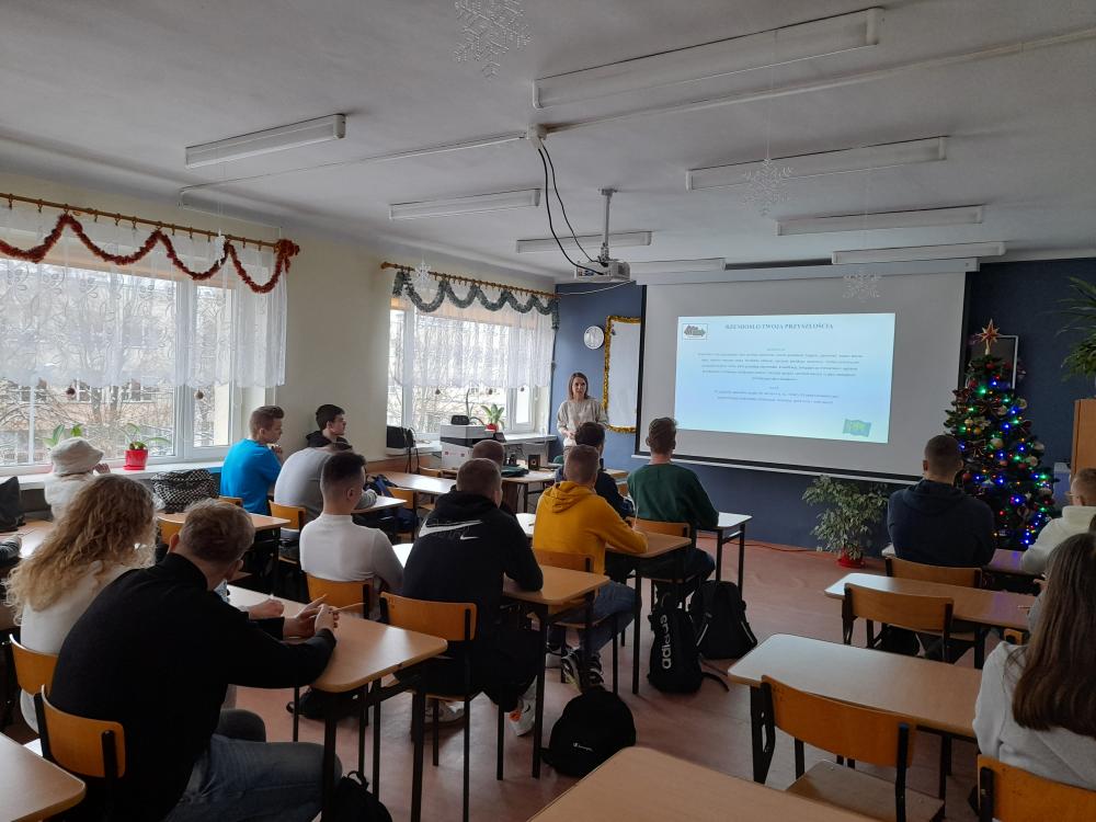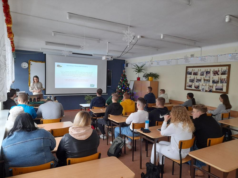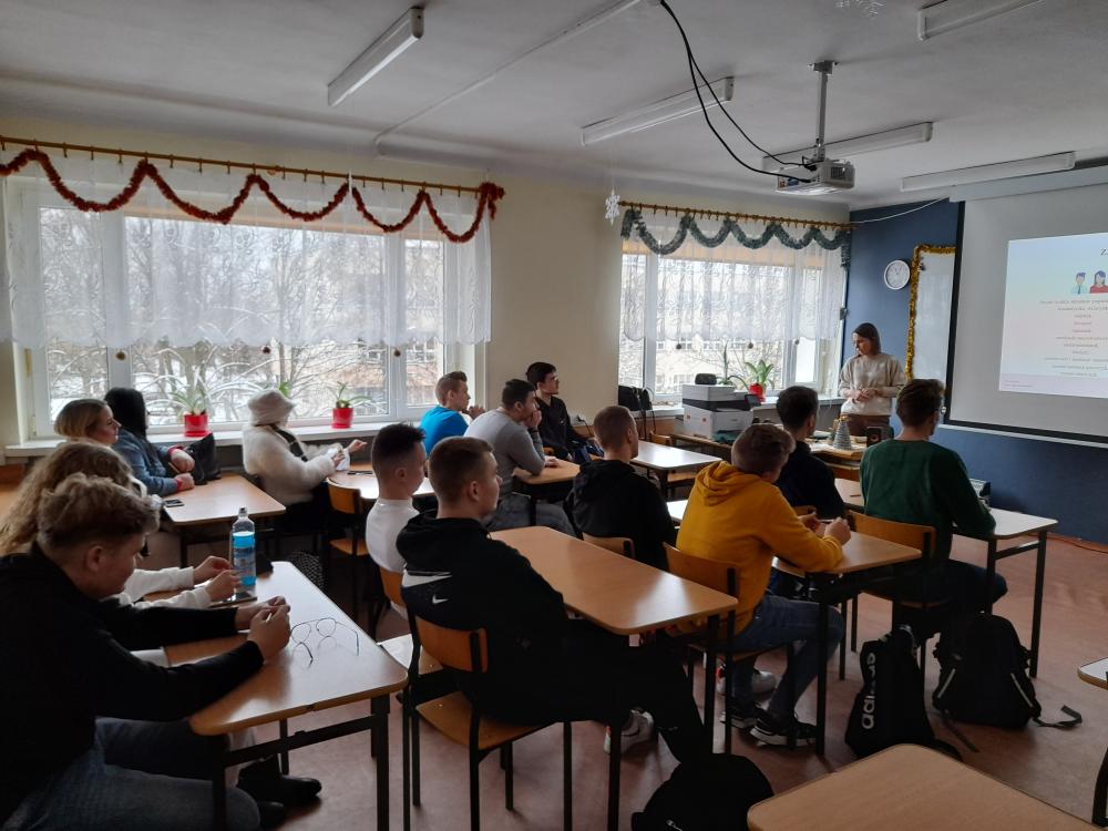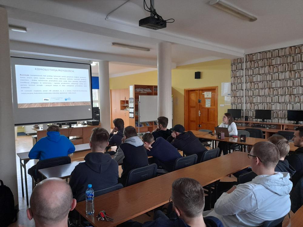 Wczoraj zakończyliśmy cykl spotkań z młodzieżą na rok szkolny 2022/2023 w ramach projektu Rzemiosło Twoją Przyszłością. W ostatnich zajęciach udział wzięli uczniowie czwartej klasy Liceum Ogólnokształcącego w Strzegowie. Celem spotkania było zbudowanie świadomości zawodowej młodzieży poprzez przedstawienie informacji o rynku pracy, możliwościach wsparcia oferowanego przez nasz urząd oraz prezentację zawodów rzemieślniczych. Dla absolwentów planujących dalszą edukację były to zajęcia, które utwierdziły ich w wyborze kierunku studiów. Dla tych, którzy po ukończeniu szkoły postanowią podjąć pracę, spotkanie dało możliwość zebrania cennych informacji o lokalnym rynku pracy oraz pracodawcach funkcjonujących w powiecie mławskim.