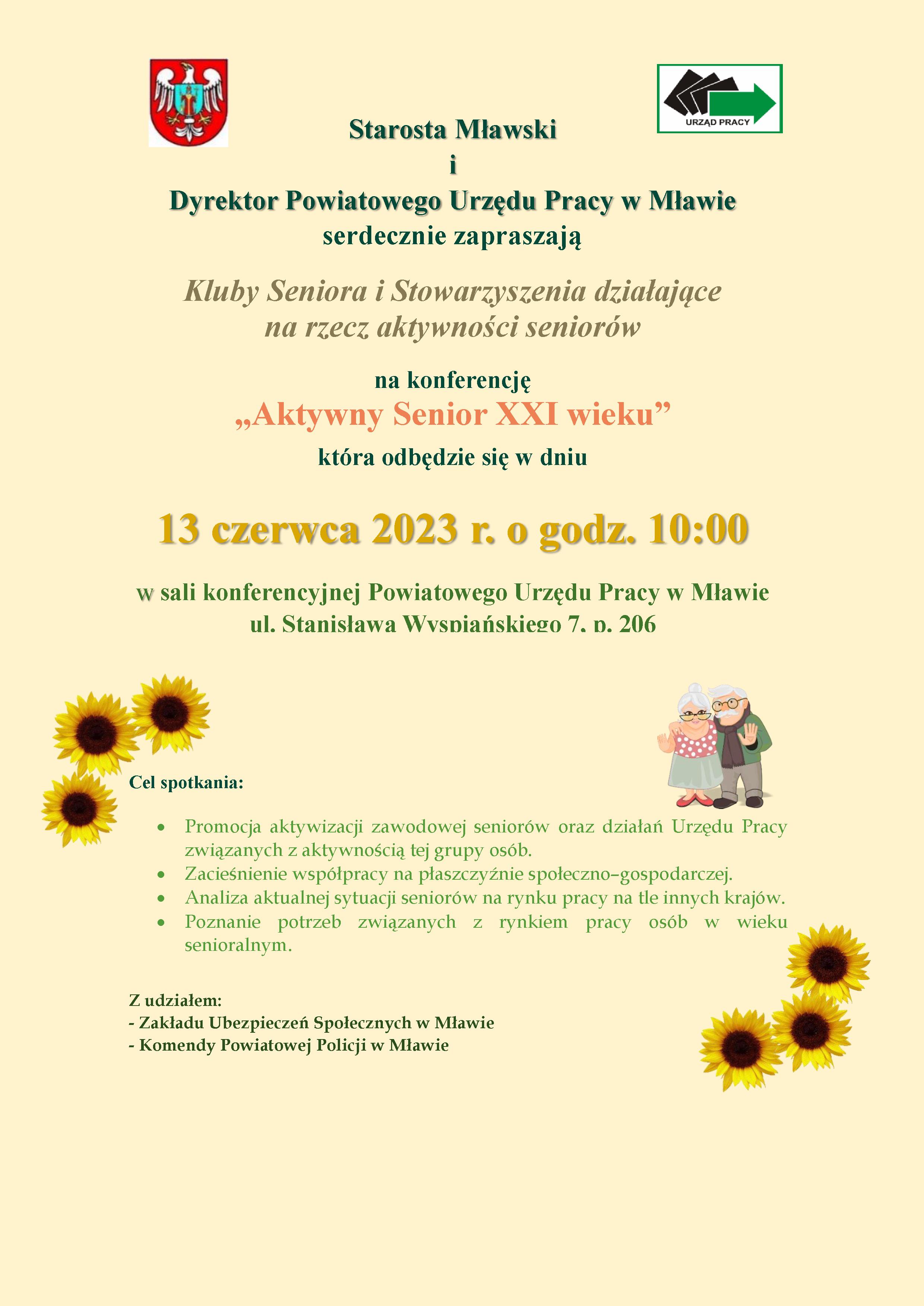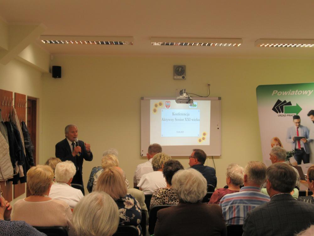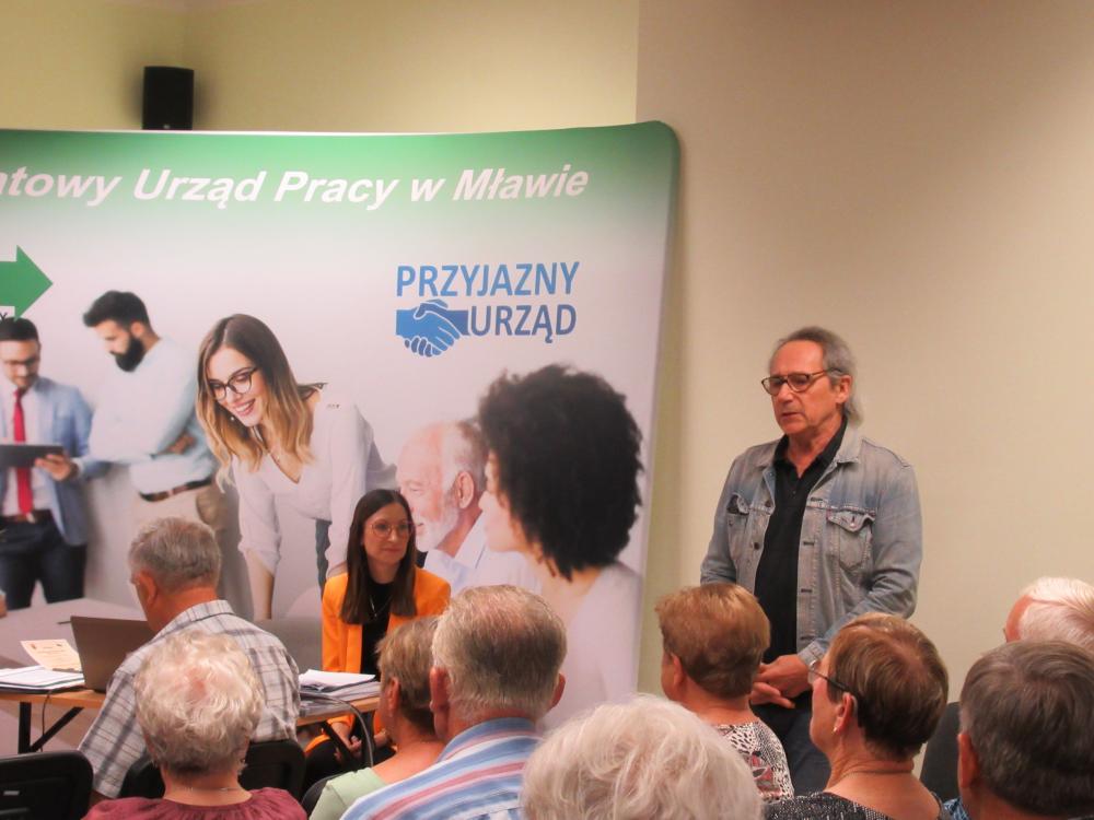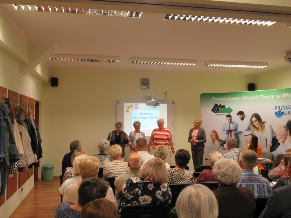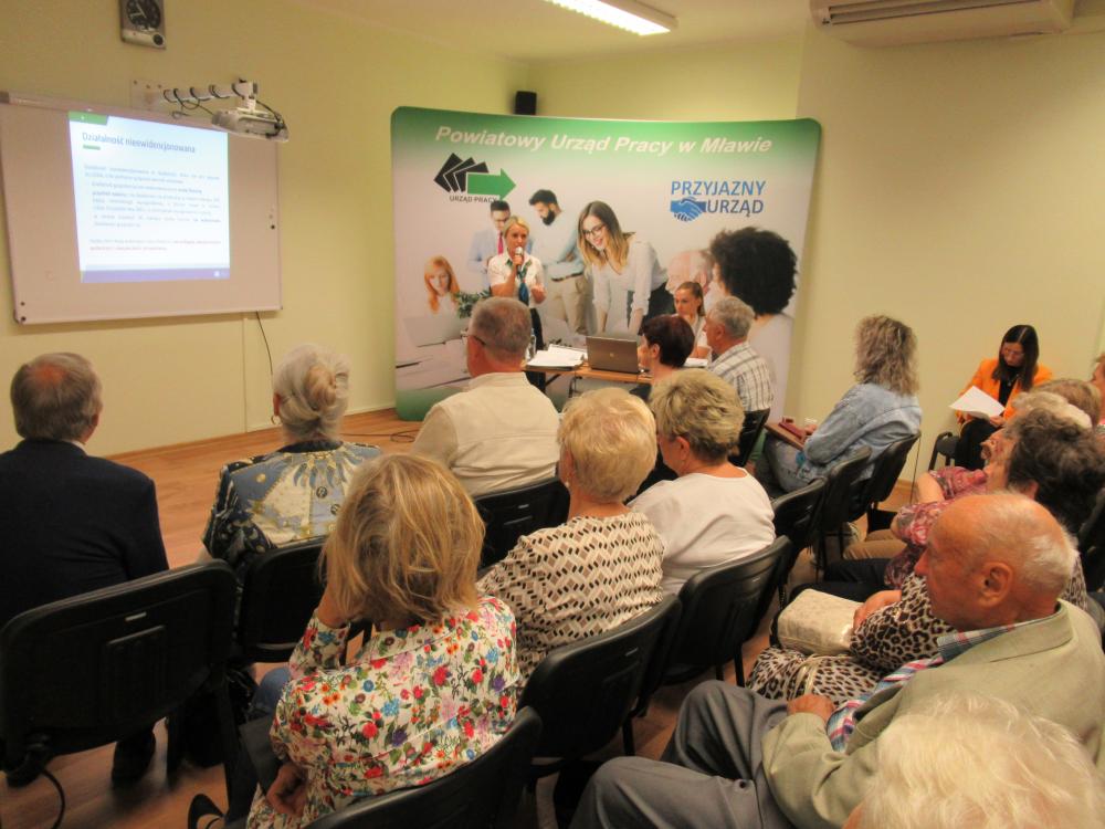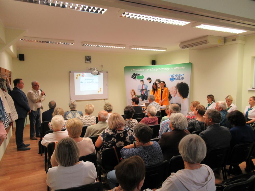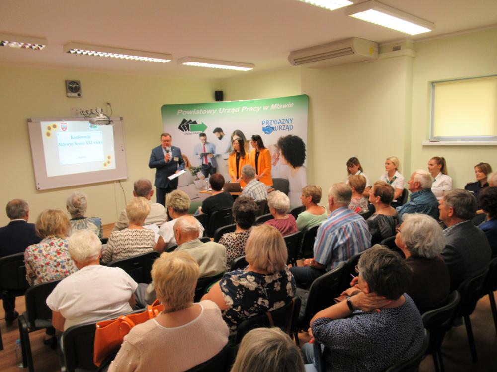 Uczestnikami konferencji byli przedstawiciele 10 klubów seniora z powiatu mławskiego oraz instytucje i stowarzyszenia działające na rzecz aktywności seniorów. Pracownicy Powiatowego Urzędu Pracy, w formie prezentacji zapoznali uczestników spotkania z analizą wieku emerytalnego oraz statystykami dotyczącym podejmowania zatrudnienia przez tę grupę osób na tle innych krajów. Omówione zostały działania Urzędu promujące podjęcie zatrudnienia wśród osób w wieku senioralnym oraz dostępne formy pomocy skierowane do tej grupy.