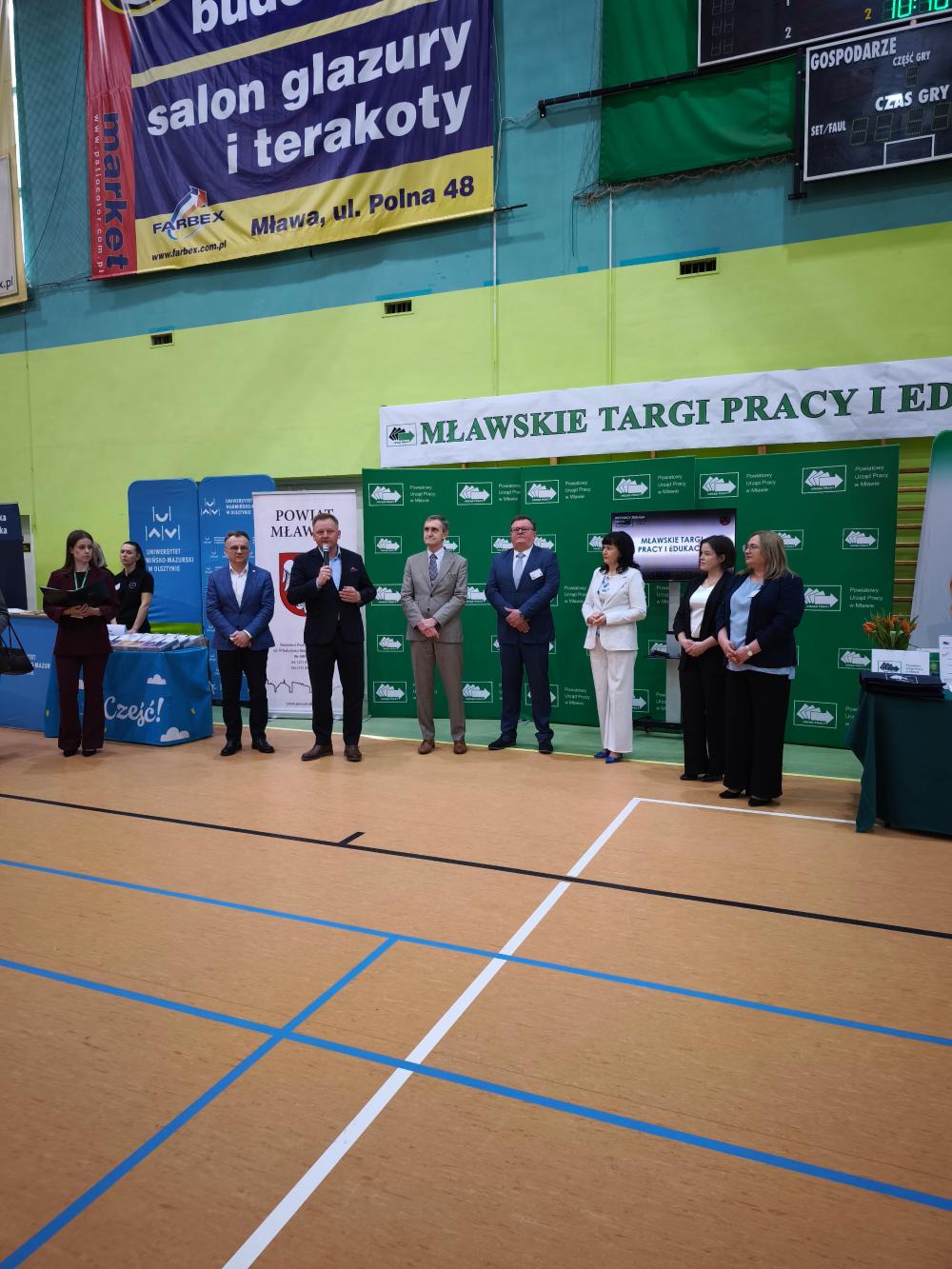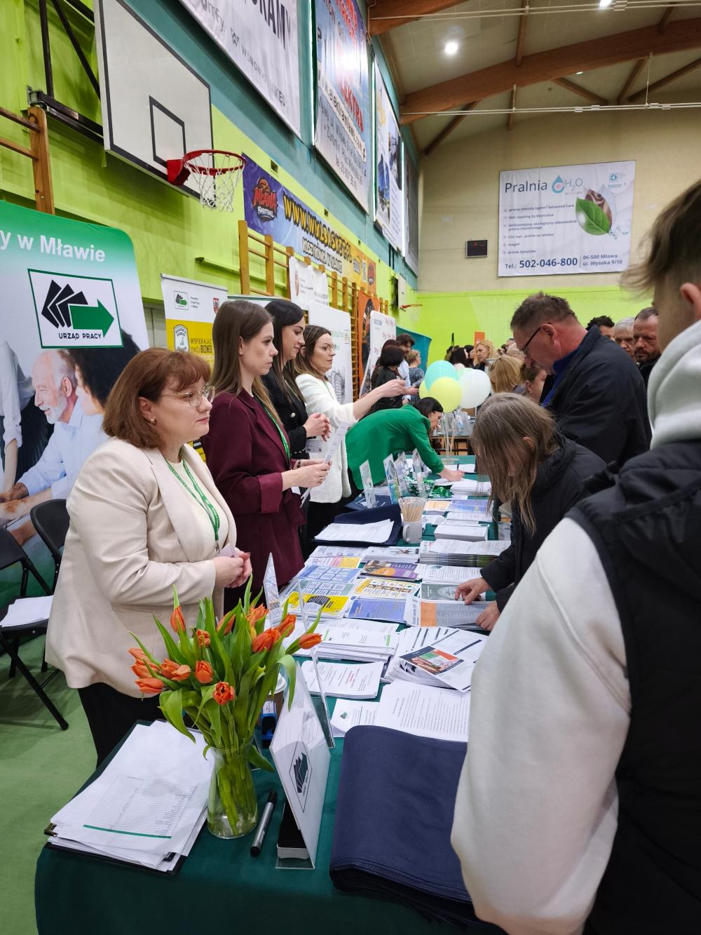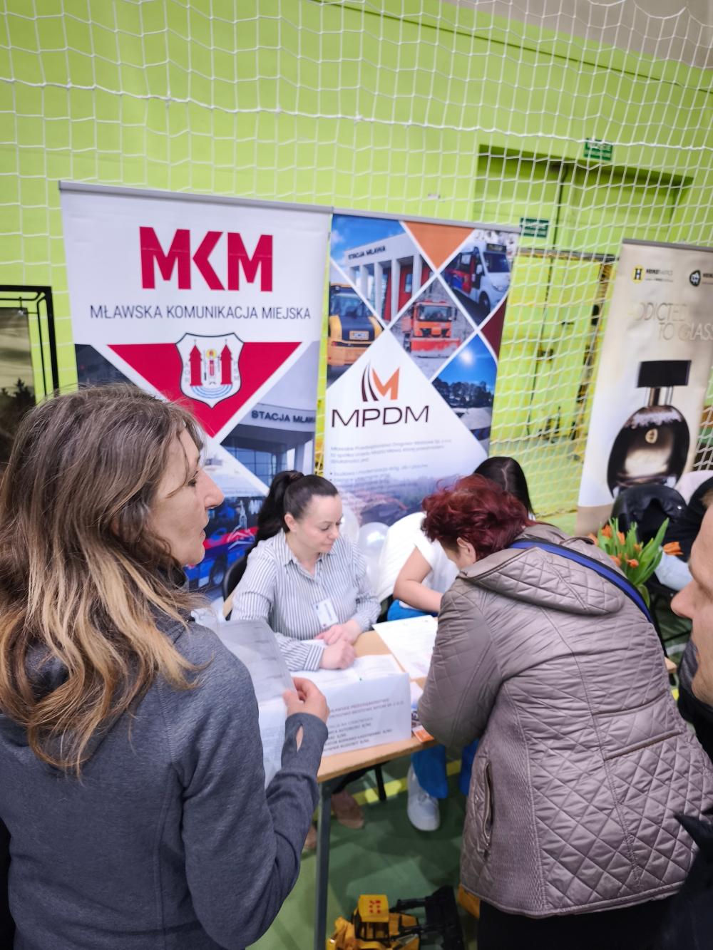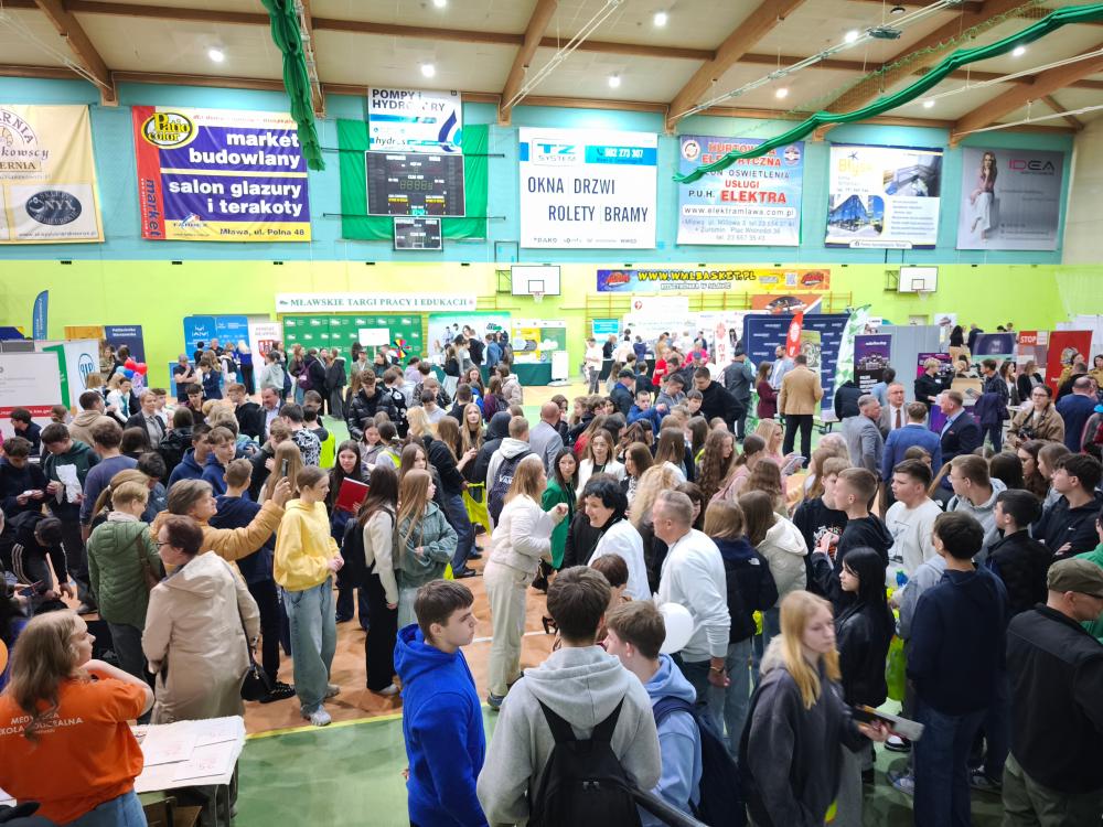 22 kwietnia 2026 roku w Mławskiej Hali Sportowej odbyły się Mławskie Targi Pracy i Edukacji. W tym roku wydarzenie to kierowaliśmy do bardzo szerokiego grona odbiorców, nie tylko do osób poszukujących pracy, ale również uczniów ostatnich klas szkół ponadpodstawowych i podstawowych, ich rodziców i nauczycieli. Organizatorami wydarzenia byli Starosta Mławski i Dyrektor Powiatowego Urzędu Pracy w Mławie. W tegorocznej edycji targów łącznie uczestniczyło 78 wystawców, w tym 35 pracodawców branży produkcyjnej, spożywczej, budowlanej, elektrycznej, transportowej, gastronomicznej i usługowej, którzy mieli do zaoferowania prace miedzy innymi na stanowiskach pomoc księgowej, technolog branży spożywczej, elektromonter, inżynier sanitarny, pielęgniarka, fizjoterapeuta, przedstawiciel handlowy, pracownik ds. ofertowania, kierowca autobusu, operator maszyn, szwaczka, osoba zajmująca się pracami pomocniczymi przy produkcji, brukarz, magazynier, fryzjer, pomoc kowala.