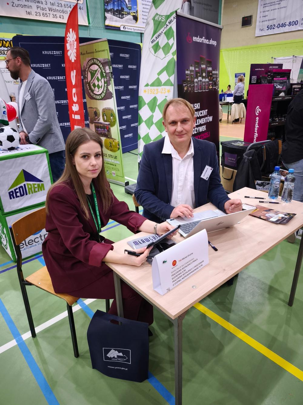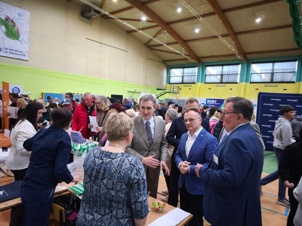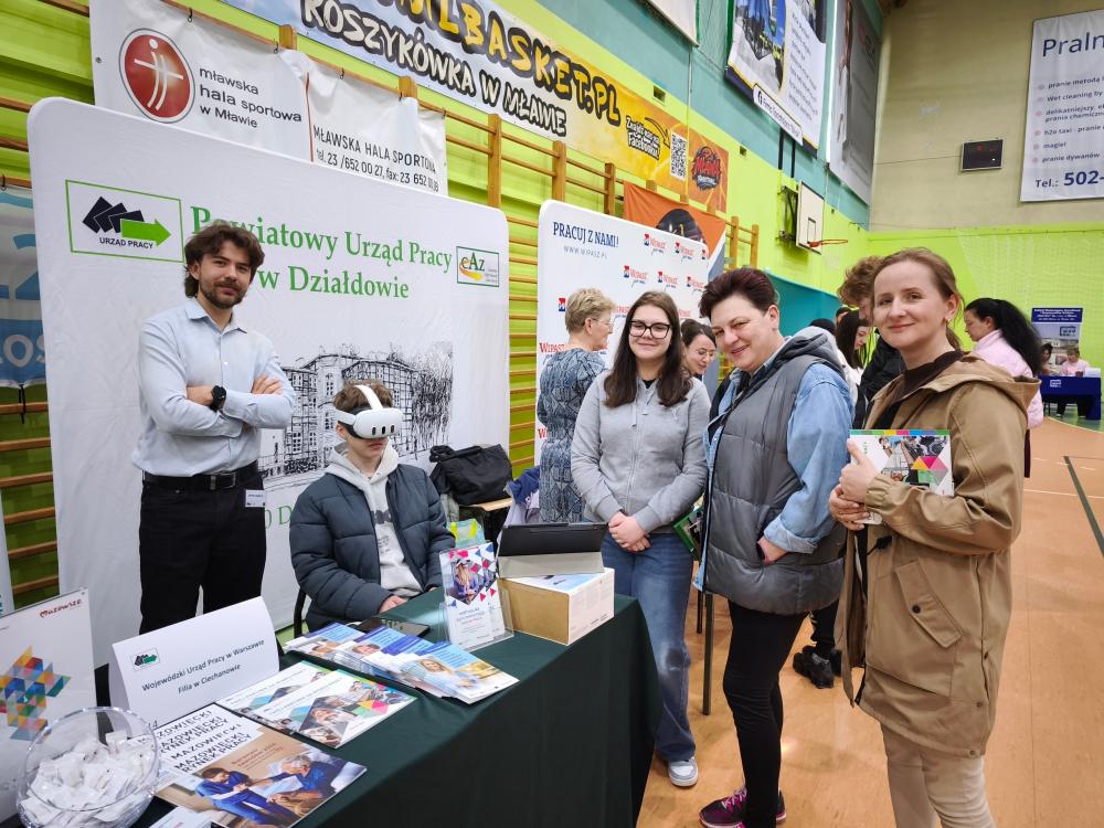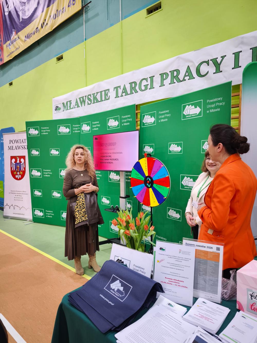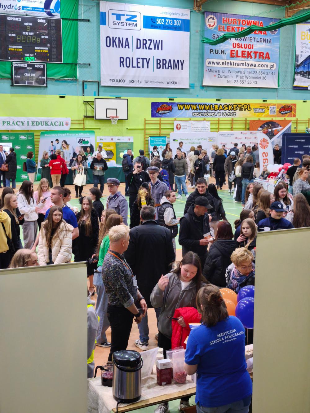 22 kwietnia 2026 roku w Mławskiej Hali Sportowej odbyły się Mławskie Targi Pracy i Edukacji. W tym roku wydarzenie to kierowaliśmy do bardzo szerokiego grona odbiorców, nie tylko do osób poszukujących pracy, ale również uczniów ostatnich klas szkół ponadpodstawowych i podstawowych, ich rodziców i nauczycieli. Organizatorami wydarzenia byli Starosta Mławski i Dyrektor Powiatowego Urzędu Pracy w Mławie. W tegorocznej edycji targów łącznie uczestniczyło 78 wystawców, w tym 35 pracodawców branży produkcyjnej, spożywczej, budowlanej, elektrycznej, transportowej, gastronomicznej i usługowej, którzy mieli do zaoferowania prace miedzy innymi na stanowiskach pomoc księgowej, technolog branży spożywczej, elektromonter, inżynier sanitarny, pielęgniarka, fizjoterapeuta, przedstawiciel handlowy, pracownik ds. ofertowania, kierowca autobusu, operator maszyn, szwaczka, osoba zajmująca się pracami pomocniczymi przy produkcji, brukarz, magazynier, fryzjer, pomoc kowala.