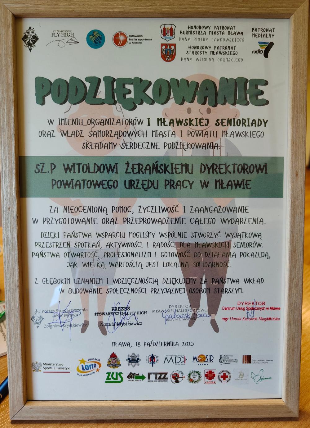 W dniach 17–18 października 2025 roku odbyła się I Mławska Senioriada – Aktywni Mławscy Seniorzy 55+, wydarzenie promujące aktywny i zdrowy styl życia wśród seniorów. W inicjatywę zaangażował się również Powiatowy Urząd Pracy w Mławie, który uczestniczył w oficjalnym przekazaniu Seniorom klucza do bram miasta, a kolejnego dnia na Mławskiej Hali Sportowej pracownicy zaprezentowali swoje stoisko informacyjno-doradcze. Seniorzy mogli dowiedzieć się więcej o programie „Aktywny Senior XXI wieku”, zapoznać się z ofertą coachingu senioralnego, zaczerpnąć informacji o możliwościach aktywizacji zawodowej i szkoleniach podnoszących kompetencje cyfrowe. Stoisko cieszyło się dużym zainteresowaniem, uczestnicy chętnie korzystali z możliwości rozmowy z doradcami, dzielili się swoimi doświadczeniami życiowymi i zawodowymi oraz pytali o realne możliwości rozwoju i pracy w późniejszym wieku. Senioriada była dwudniowym świętem zaangażowania społecznego, znakomitą okazją do promocji idei aktywizacji osób starszych, zarówno w wymiarze zawodowym, jak i społeczno-kulturalnym. Udział Powiatowego Urzędu Pracy w wydarzeniu pozwolił nie tylko na bezpośrednie dotarcie do osób starszych i zaprezentowanie dostępnych form wsparcia, ale również na zacieśnienie współpracy z innymi instytucjami działającymi na rzecz osób starszych i budowanie pozytywnego wizerunku instytucji, jako otwartej i wspierającej potrzeby mieszkańców w różnym wieku.