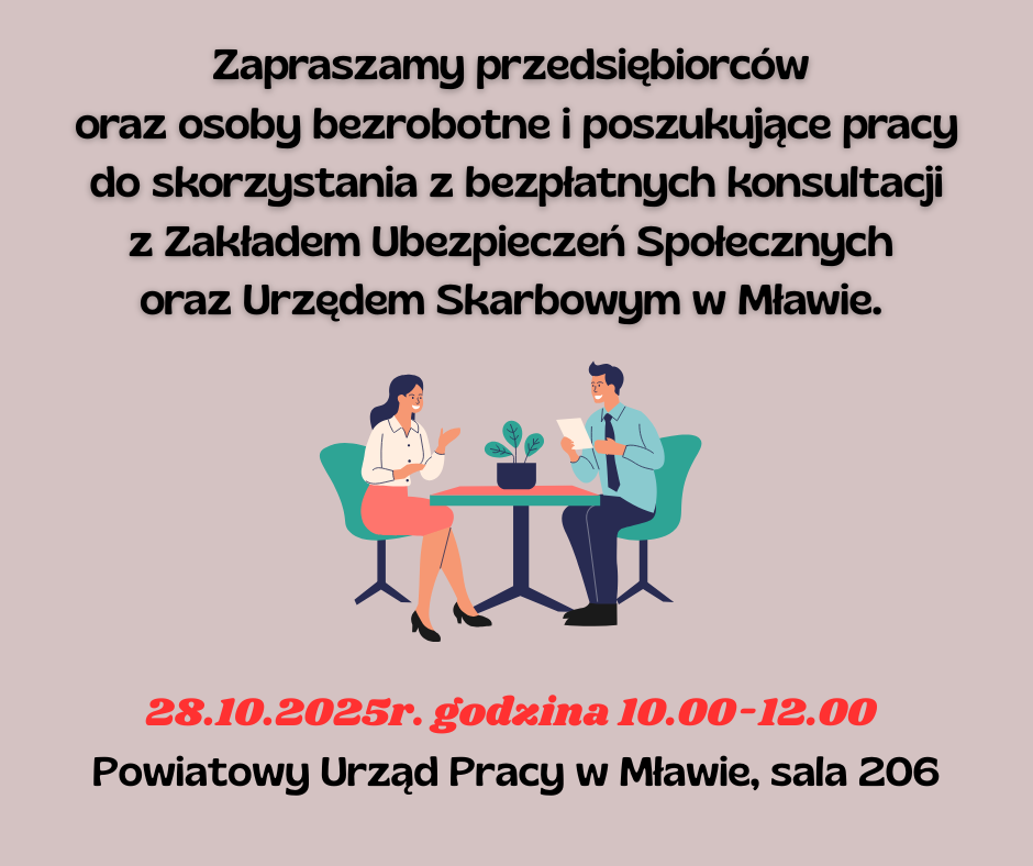 Punkt konsultacyjny z Zakładem Ubezpieczeń Społecznych i Urzędem Skarbowym w Mławie